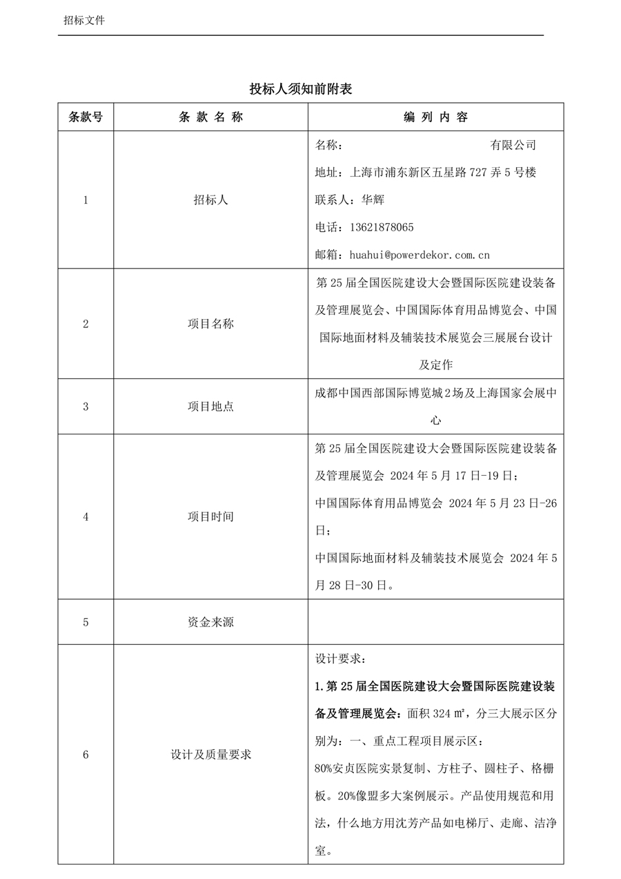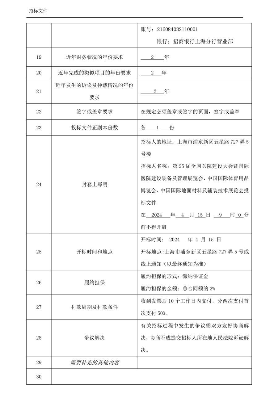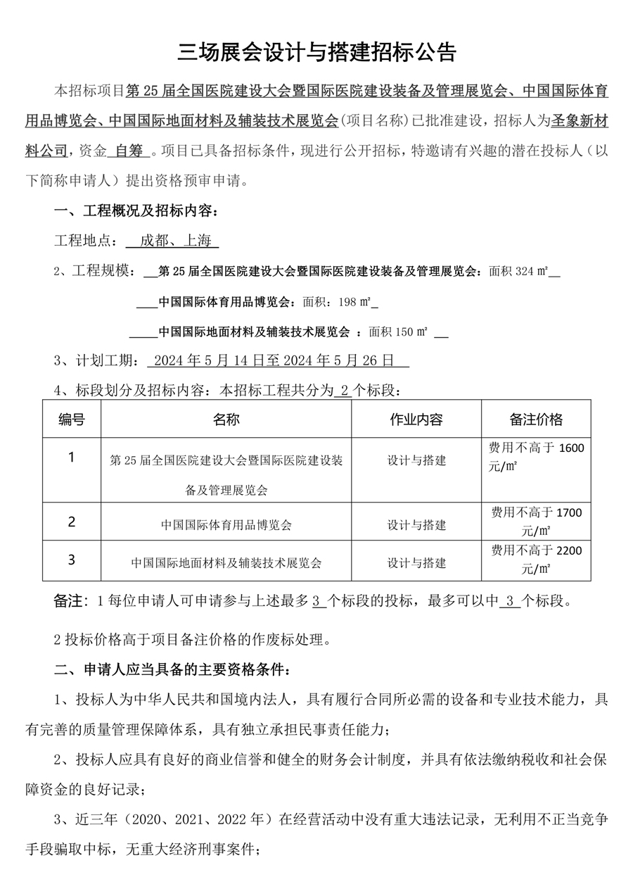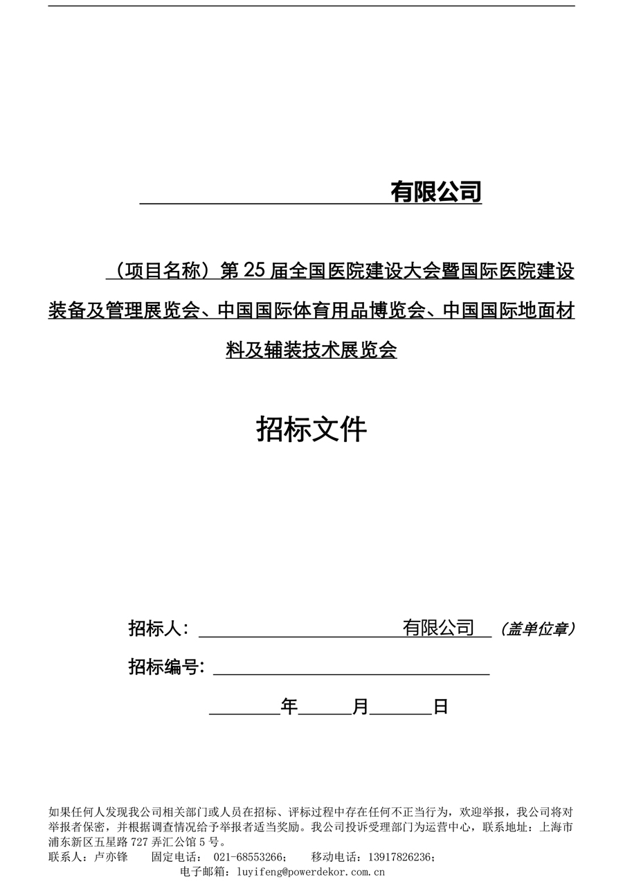 第25屆全國醫院建設大會暨國際醫院建設裝備及管理展覽會、中國國際體育用品博覽會、中國國際地面材料及輔裝技術展覽會 招標文件