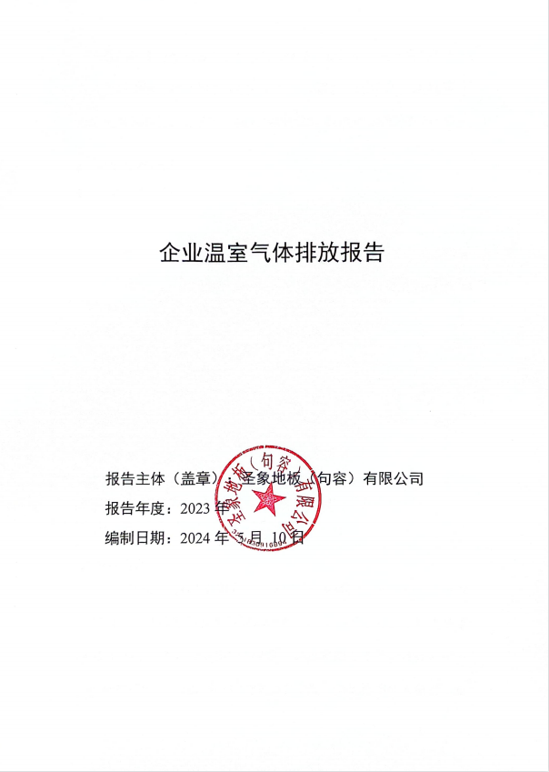 圣象地板(句容)有限公司已經連續三年對溫室氣體排放情況進行盤查,目前已經形成2021年、2022年、2023年的溫室氣體排放報告,報告顯示,工廠近三年溫室氣體排放總量逐年降低,實現了持續改善的目的。