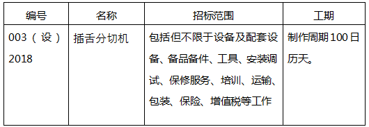 江蘇大亞新包裝材料有限公司插舌分切機(jī)招標(biāo)公告