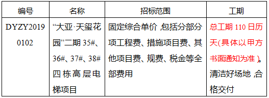 “大亞·天璽花園”二期35#、36#、37#、38#四棟高層電梯項(xiàng)目招標(biāo)公告