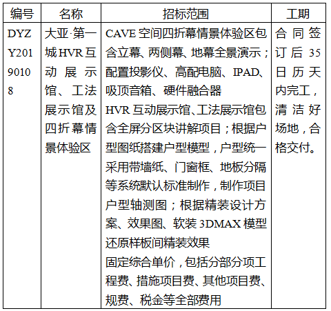 大亞·第一城售樓處HVR互動展示館項目招標公告