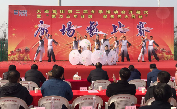 集團(tuán)副總裁眭敏宣布大亞集團(tuán)第二屆冬季運(yùn)動(dòng)會(huì)開幕!集團(tuán)董事局辦公室主任、工會(huì)主席張建松在開幕式上致辭。他指出,集團(tuán)舉辦本屆運(yùn)動(dòng)會(huì)的目的是深入貫徹落實(shí)陳曉龍董事長提出的“以競(jìng)技彰顯活力,以文化凝聚力量,在運(yùn)動(dòng)中創(chuàng)新思路,在競(jìng)爭(zhēng)中提升技能”的融合發(fā)展理念,進(jìn)一步唱響企業(yè)發(fā)展主旋律,傳播奮進(jìn)正能量,舞動(dòng)青春新風(fēng)采。本屆運(yùn)動(dòng)會(huì)共有來自集團(tuán)公司10個(gè)代表隊(duì)900多名運(yùn)動(dòng)員共參加16個(gè)項(xiàng)目的比賽。他希望全體運(yùn)動(dòng)員、裁判員要堅(jiān)持“友誼第一、比賽第二、公平競(jìng)爭(zhēng)”的原則,遵守賽場(chǎng)紀(jì)律,遵守比賽規(guī)則,頑強(qiáng)拼搏、勇于爭(zhēng)先、賽出風(fēng)格、賽出水平,以優(yōu)異的成績(jī)展示企業(yè)員工的精神面貌和絢麗風(fēng)采。努力把本屆運(yùn)動(dòng)會(huì)一定能辦成“內(nèi)聚力量、外塑形象”,全面沖刺企業(yè)年度計(jì)劃目標(biāo)實(shí)施的體育盛會(huì)和競(jìng)技展示會(huì),并通過此次活動(dòng),將“追求卓越、挑戰(zhàn)極限、創(chuàng)新發(fā)展、敢于擔(dān)當(dāng)”企業(yè)精神,伴隨著大亞五年計(jì)劃和五大戰(zhàn)略的實(shí)施不斷得到新的升華。