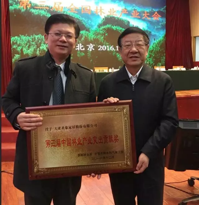 在經濟發展新常態下,大亞科技集團在陳曉龍先生的帶領下,全體干部員工深入貫徹落實“創新、協調、綠色、開放、共享”五大發展理念,緊緊圍繞集團五大發展戰略,以提高產業供給的質量和效率為已任,提升發展內生動力,釋放市場主體活力,全方位推進品牌發展、科技創新、產業升級和國際化戰略,以創新驅動厚植企業龍頭優勢,以轉型升級推動企業的可持續發展。此次獲獎,是國家林業局對大亞科技集團多年來為我國林業產業發展作出的突出貢獻的充分肯定和鼓勵,相信在國家林業局的關懷下,大亞大家居戰略必將為中國林產工業的發展作出更大的貢獻!