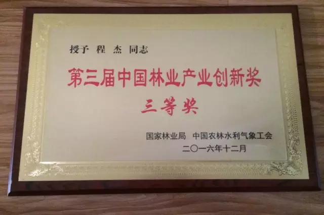 人造板集團副總裁程杰先生榮獲“第三屆中國林業產業創新獎”(個人獎)