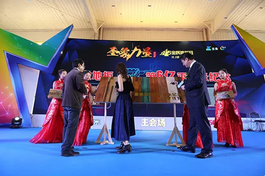 今年,圣象榮獲中國500最具價值品牌,品牌價值達345.68億元。這些數(shù)字讓圣象人深感驕傲。而今天,圣象又用實力為大家創(chuàng)造了一份記錄——圣象第六億平米地板正式下線。很多人對“6億”這個數(shù)字沒有概念,具象化來說,6億平米的地板可圍繞地球48圈,覆蓋20座萬里長城!丹陽市統(tǒng)計局副局長盛躍軍先生宣讀了這一權(quán)威統(tǒng)計數(shù)據(jù)。