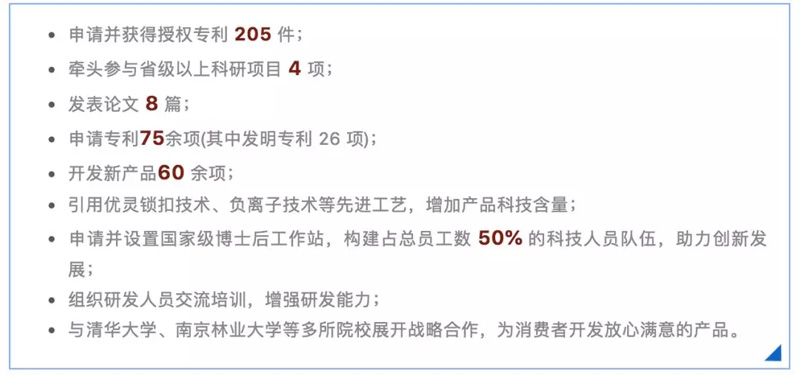 圣象一直深知科技研發(fā)對(duì)企業(yè)發(fā)展的重要性,在科研和創(chuàng)新上積極投入。其中,圣象專業(yè)的國(guó)家級(jí)實(shí)驗(yàn)室中自建成以來(lái),獲得了以下成果: