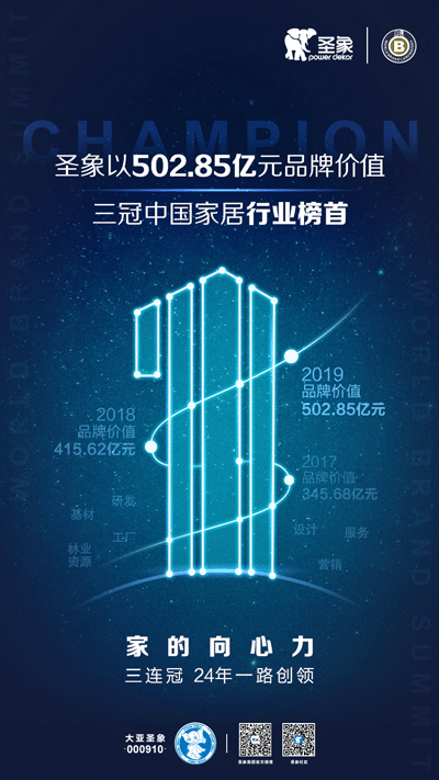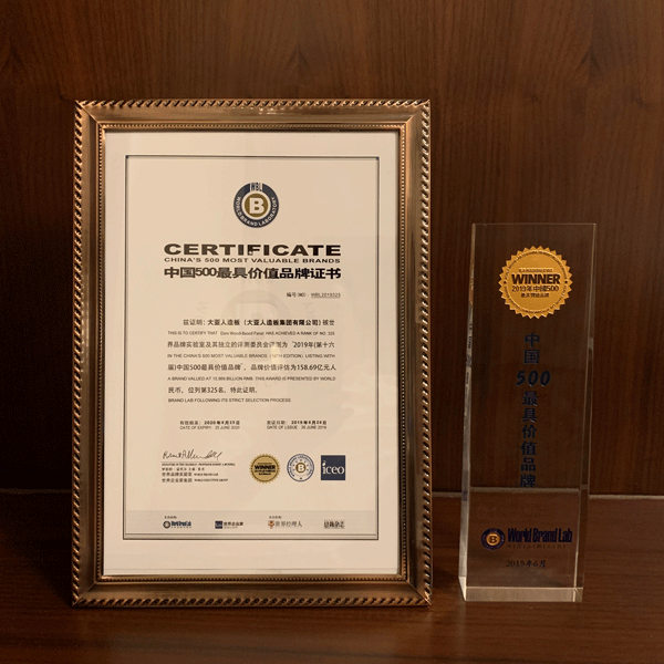 由世界品牌實驗室(World Brand Lab)主辦的(第十六屆)“世界品牌大會”于6月26日在北京舉行,會上發(fā)布了2019年《中國500最具價值品牌》分析報告。在這份基于財務(wù)數(shù)據(jù)、品牌強度和消費者行為分析的年度報告中,圣象以502.85億元人民幣品牌價值三冠中國家居行業(yè)榜首,大亞人造板以158.69億元品牌價值蟬聯(lián)中國人造板行業(yè)榜首!
