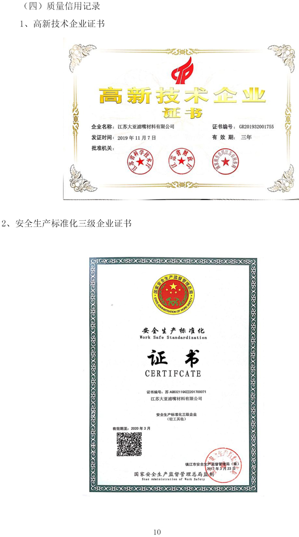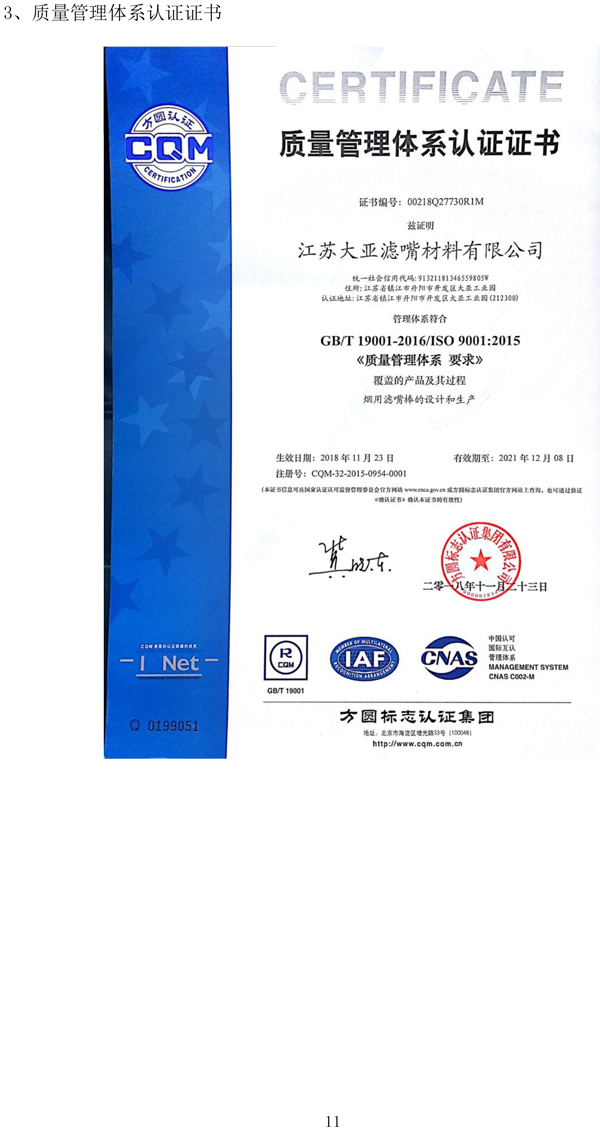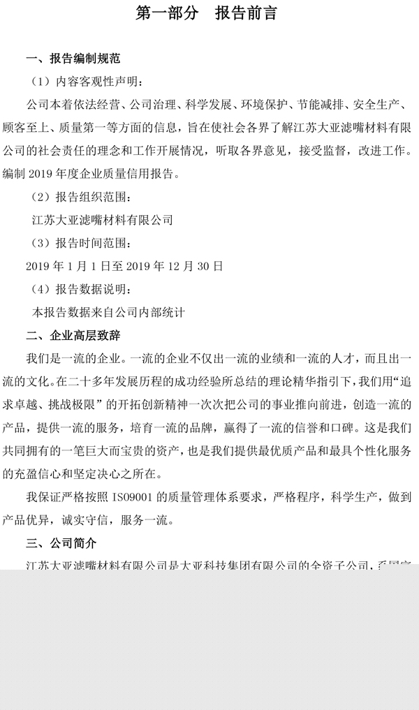 企業(yè)質(zhì)量信用報(bào)告——江蘇大亞濾嘴材料有限公司