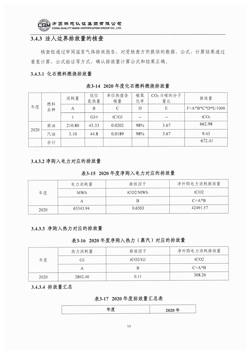 大亞人造板集團有限公司2020年度溫室氣體排放核查報告自主公示