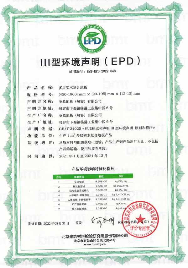 圣象地板(句容)有限公司,積極響應國家政策和行業發展趨勢,委托第三方基于生命周期評價方法開展產品碳足跡核算評價工作,助推企業控制和減少碳排放,實現綠色發展。